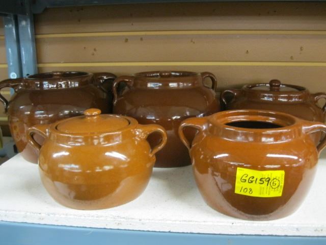 5 BEAN POTS ONE MISSING LID