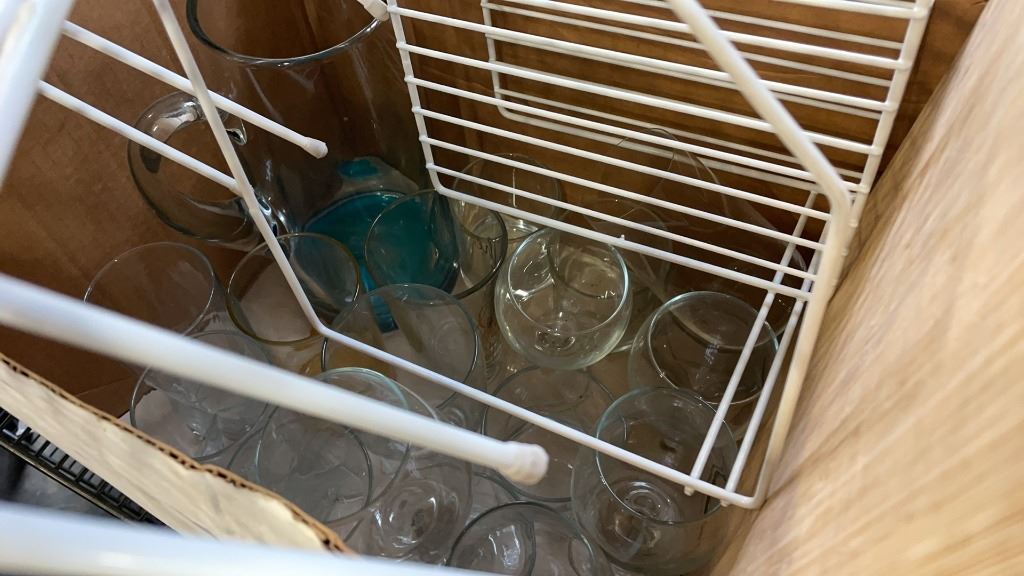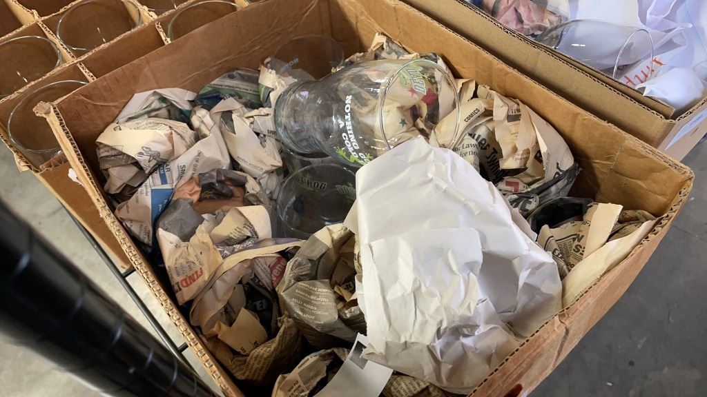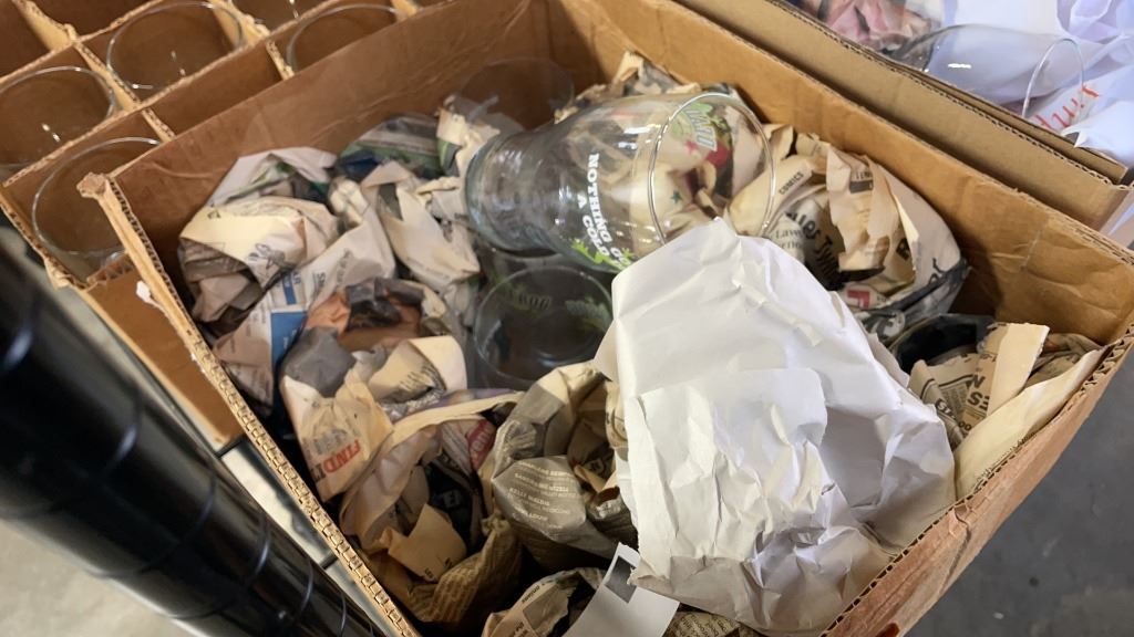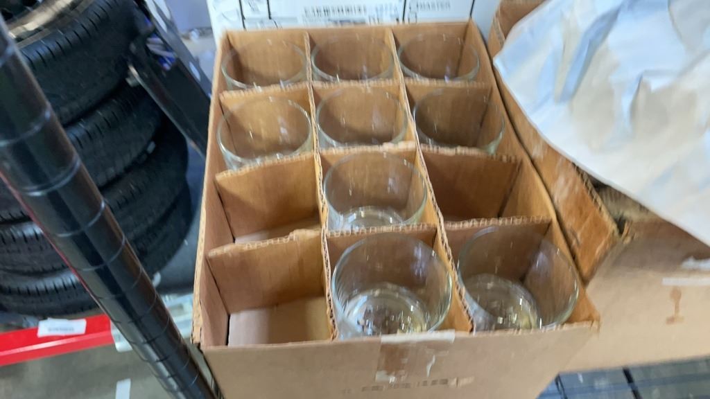 5 BOXES OF DEAD FROG PINT GLASSES, 20 WHISKEY GLASSES, RED WINE GLASSES AND MORE