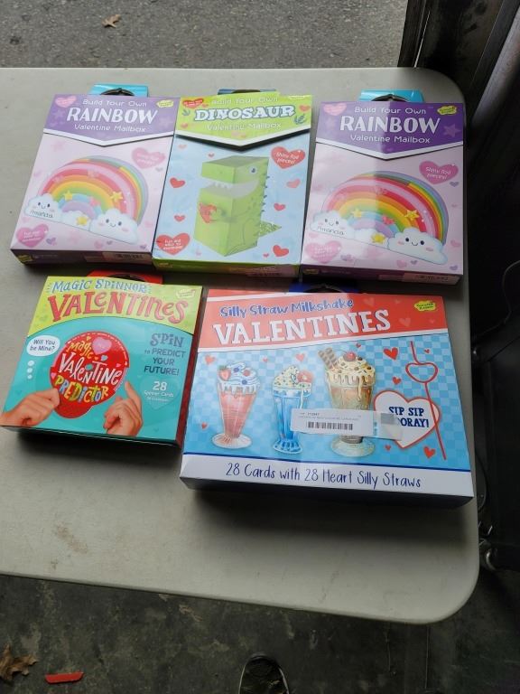 5 BOXES OF NEW VALENTINE CARDS AND VALENTINE MAILBOXES