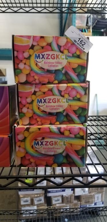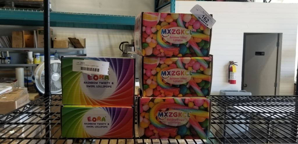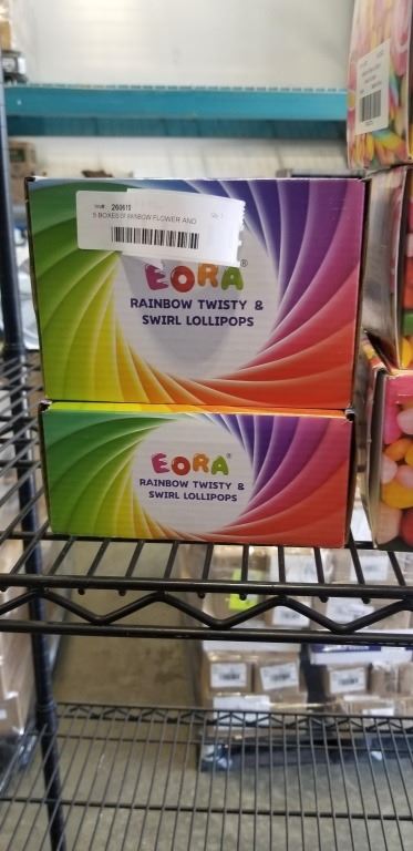 5 BOXES OF RAINBOW FLOWER AND RAINBOW SWIRLY LOLLIPOPS
