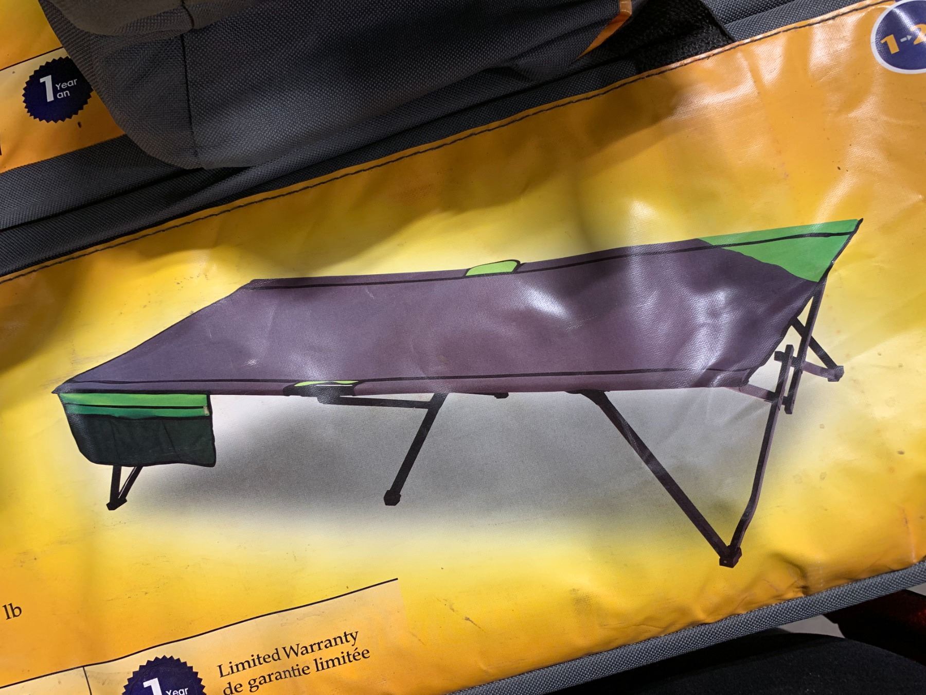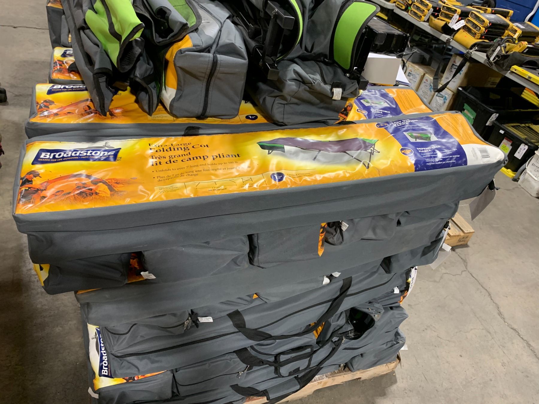 5 BROADSTONE EXTRA LARGE FOLDING COTS IN CLOTH TRANSPORT BAGS