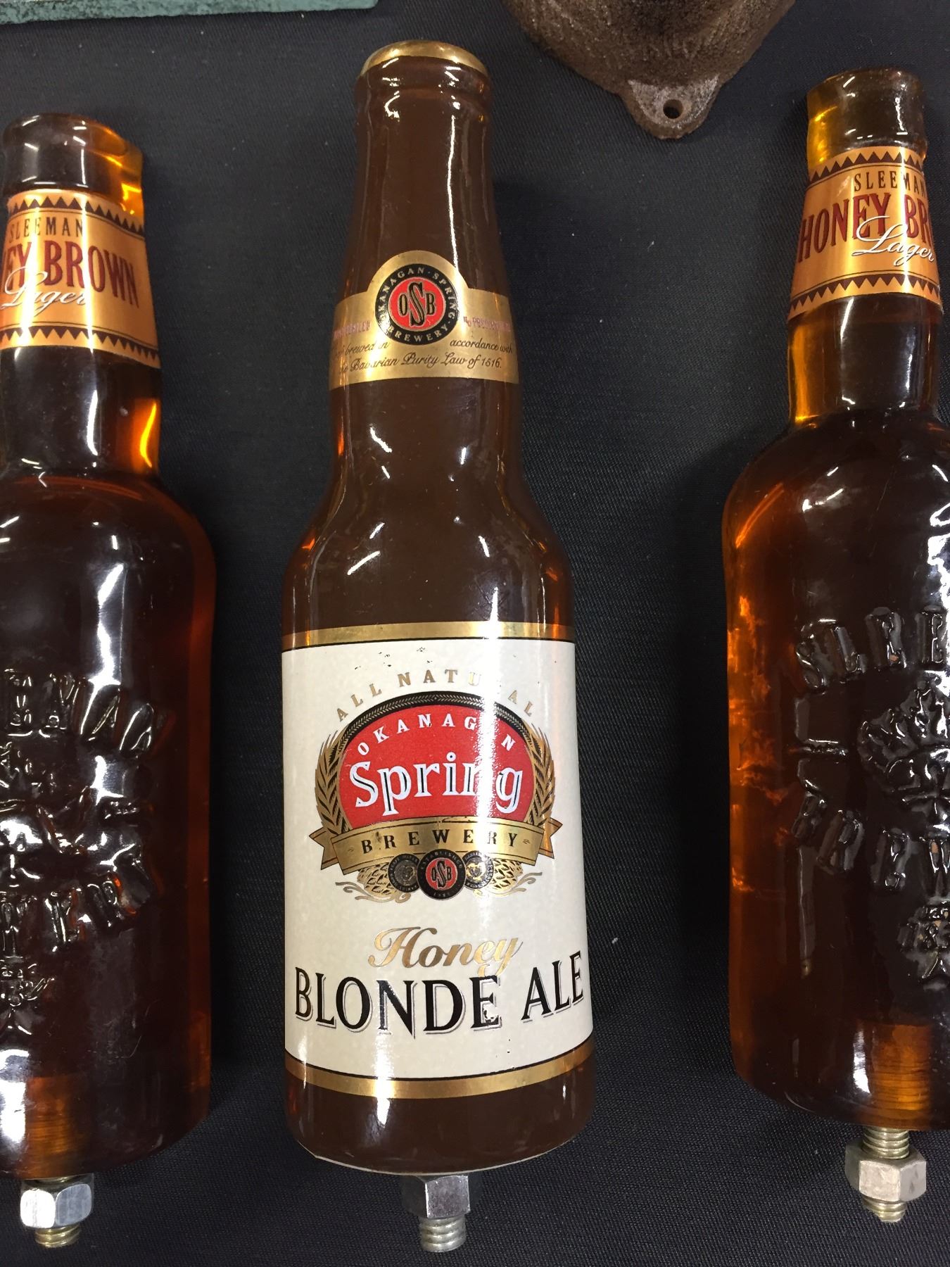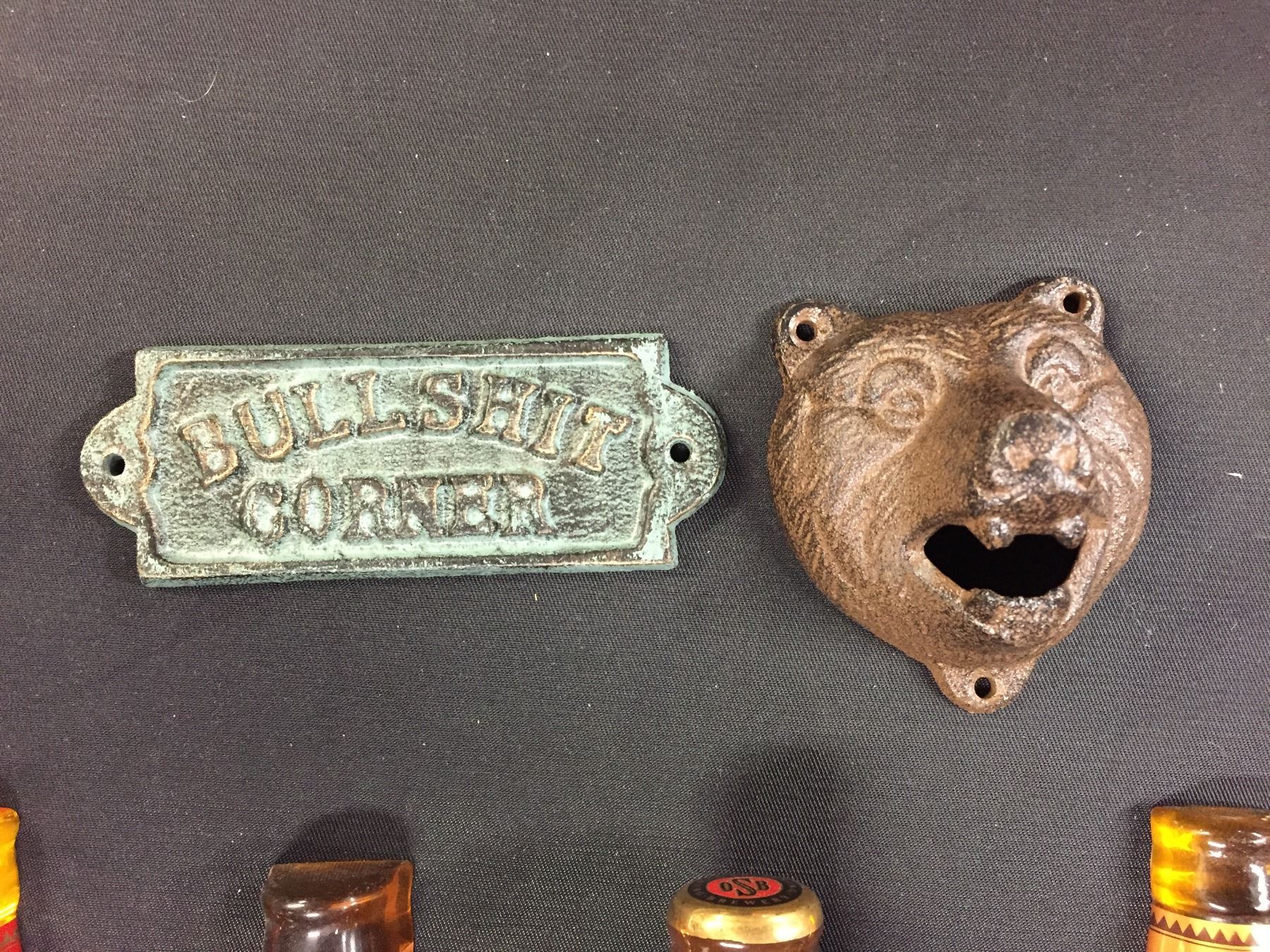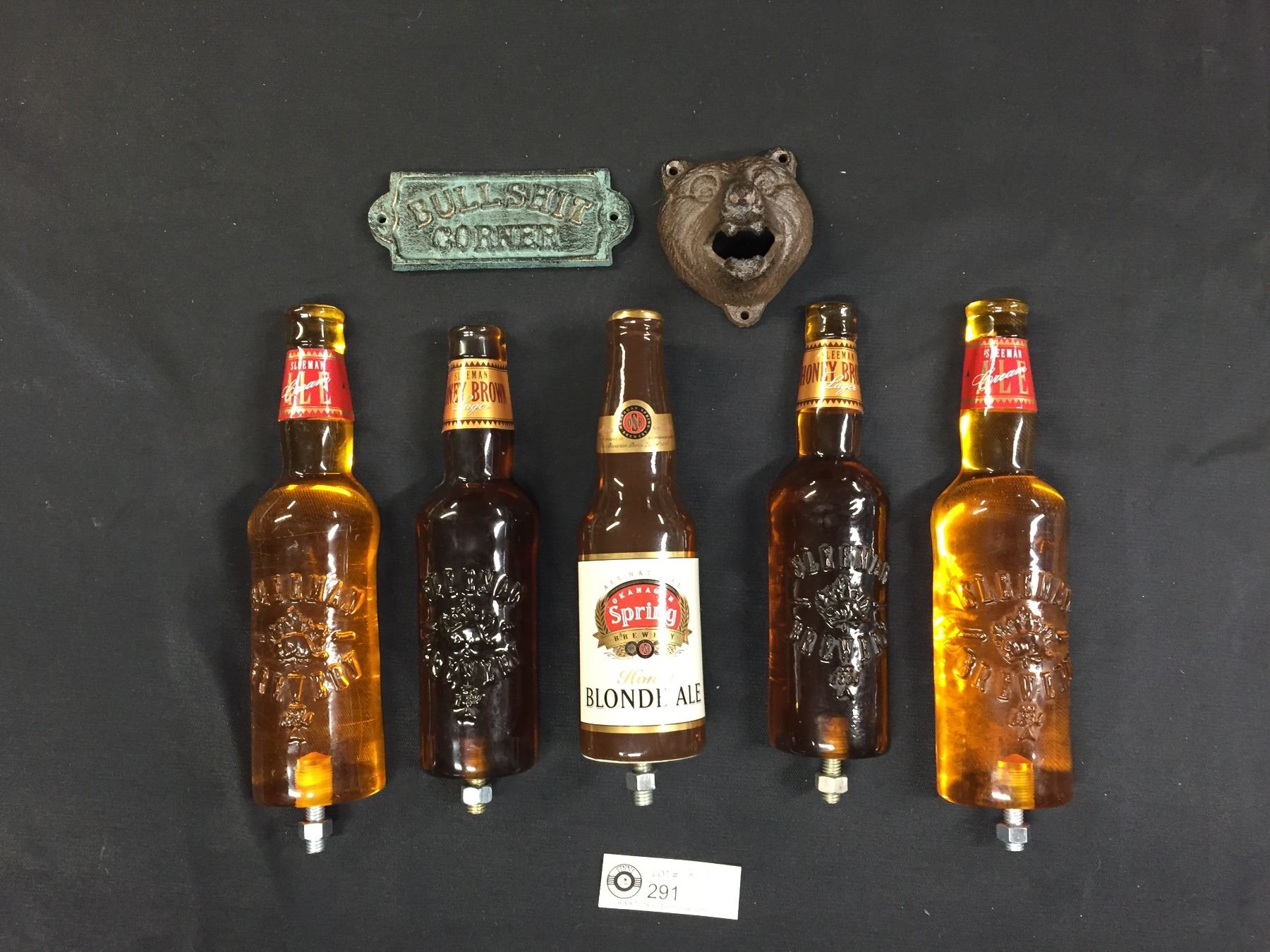 5 Beer Taps Bearface Wall Mount Bottle Opener Plus A BS Corner Sign. Sleeman Okanagan Springs