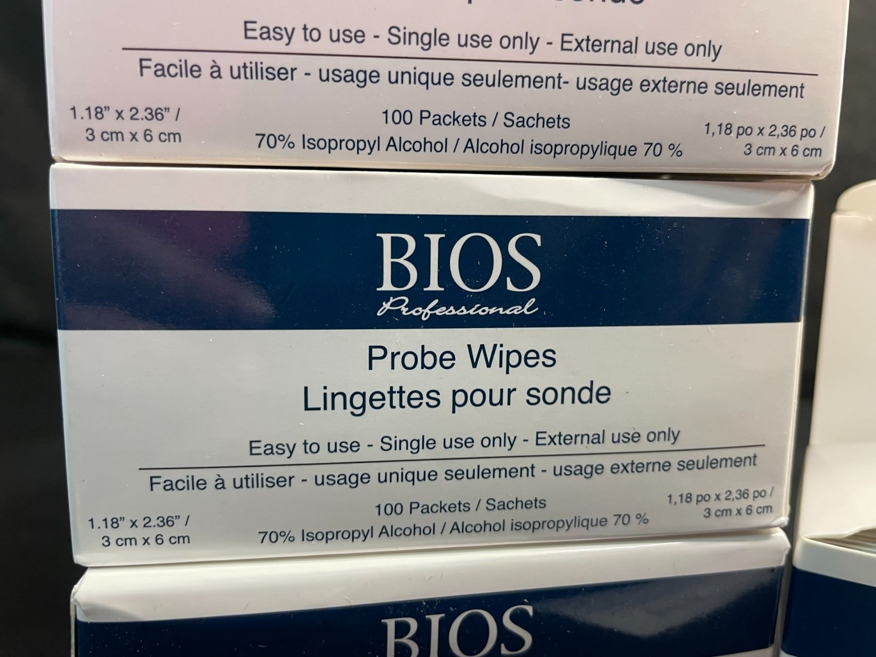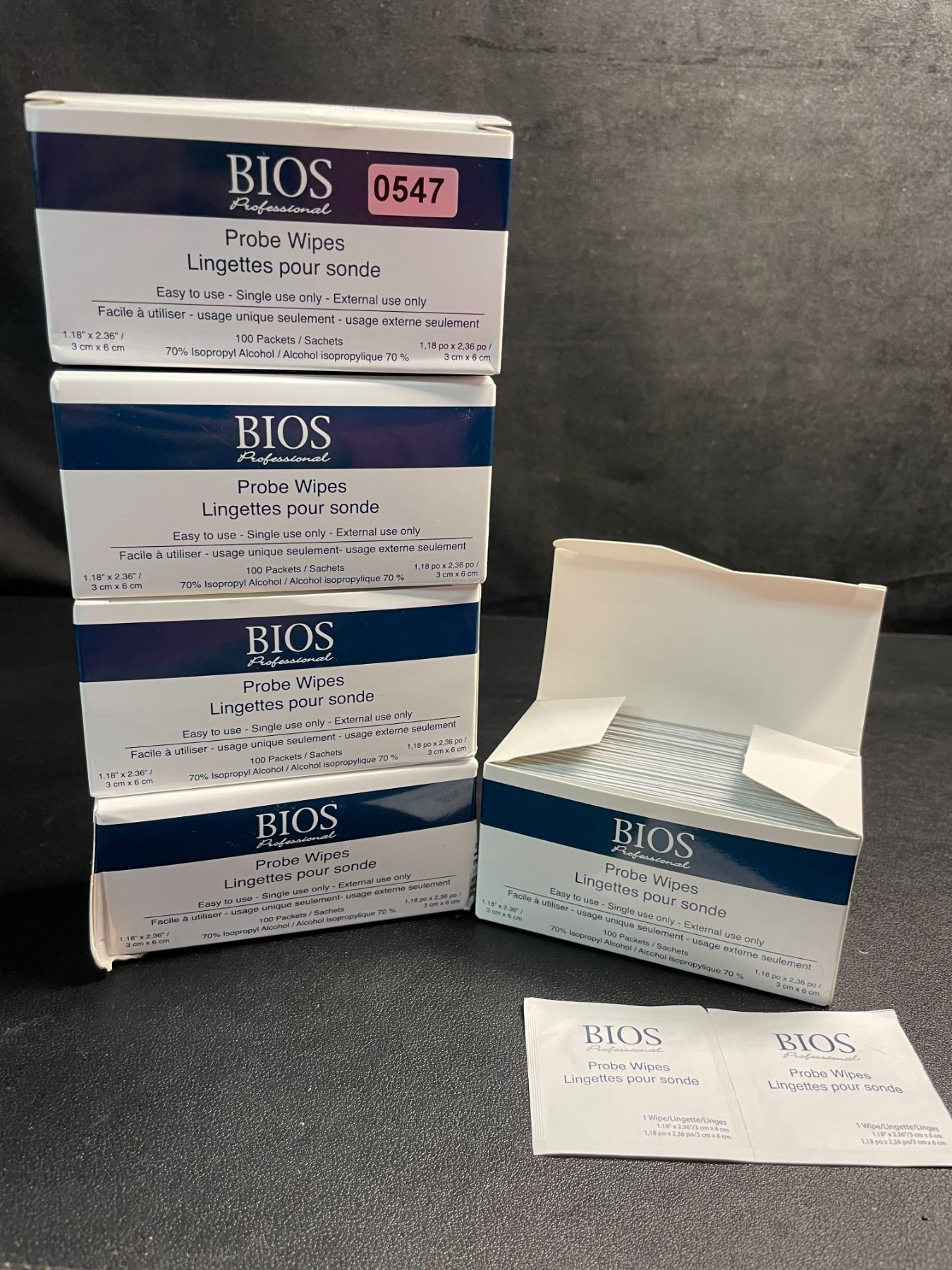 5 Boxes of BIOS Professional Probe/Alcohol Wipes (100 Packets Per Box) - New