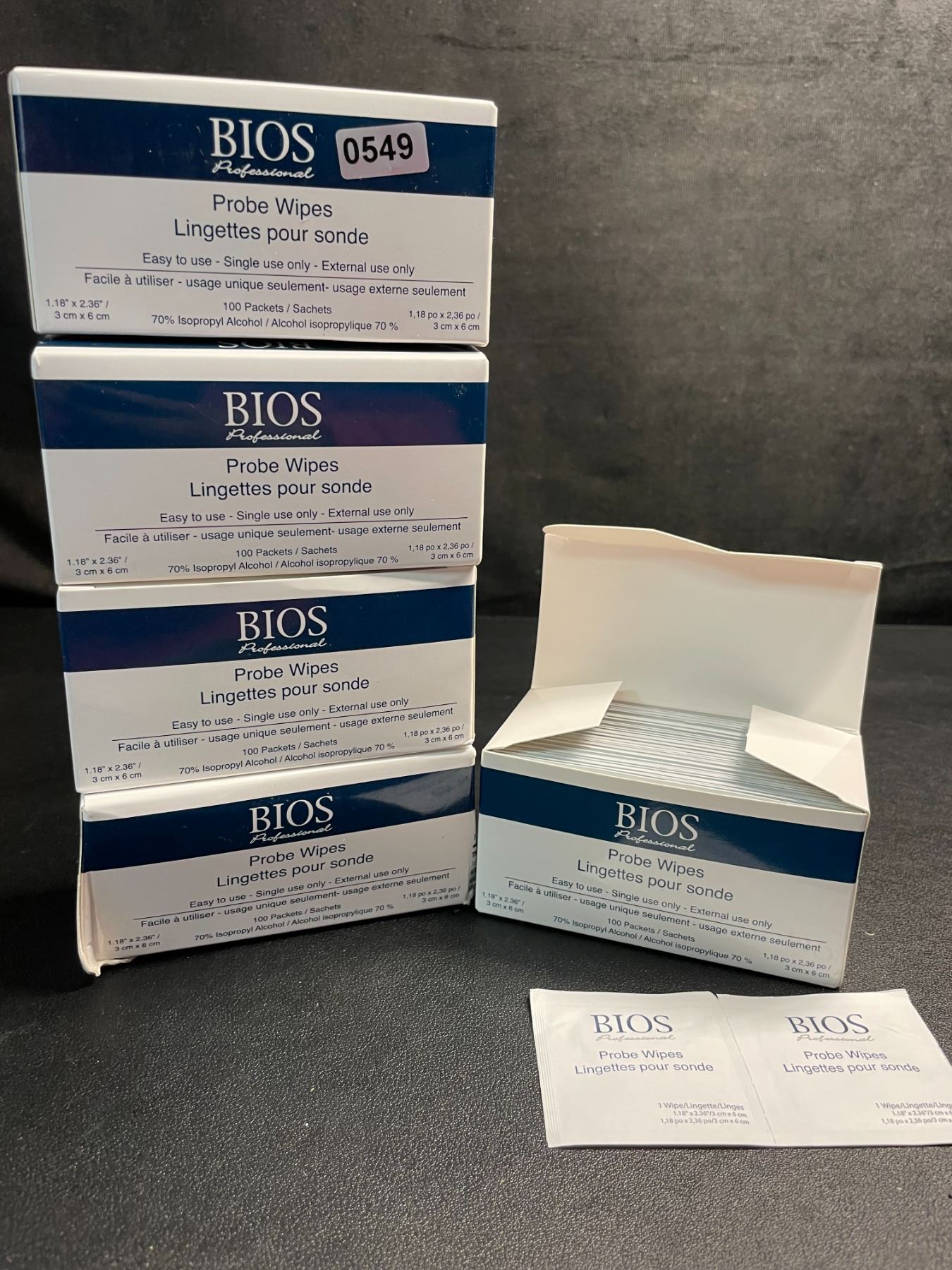 5 Boxes of BIOS Professional Probe/Alcohol Wipes (100 Packets Per Box) - New
