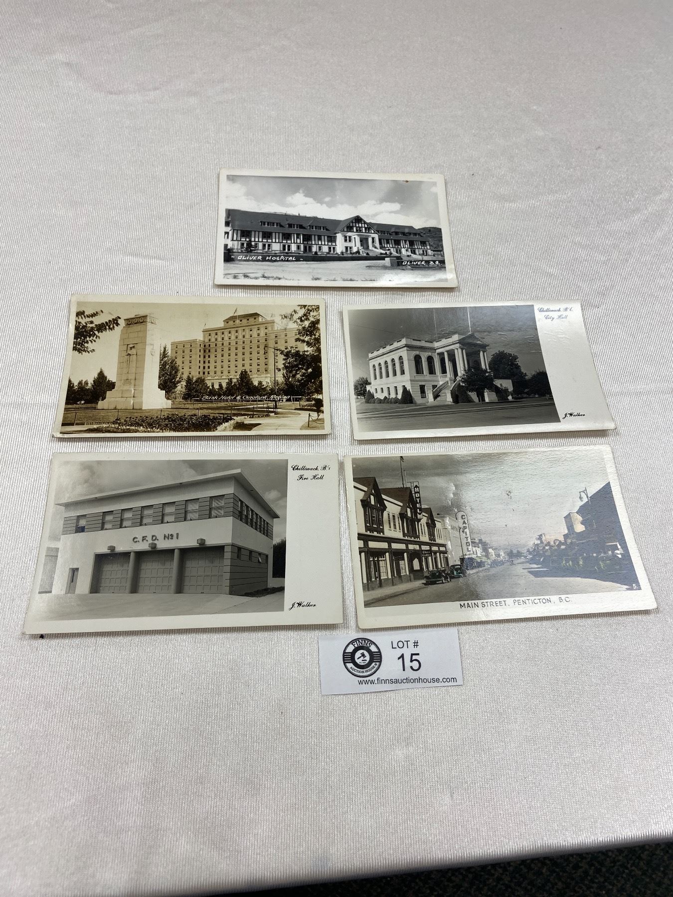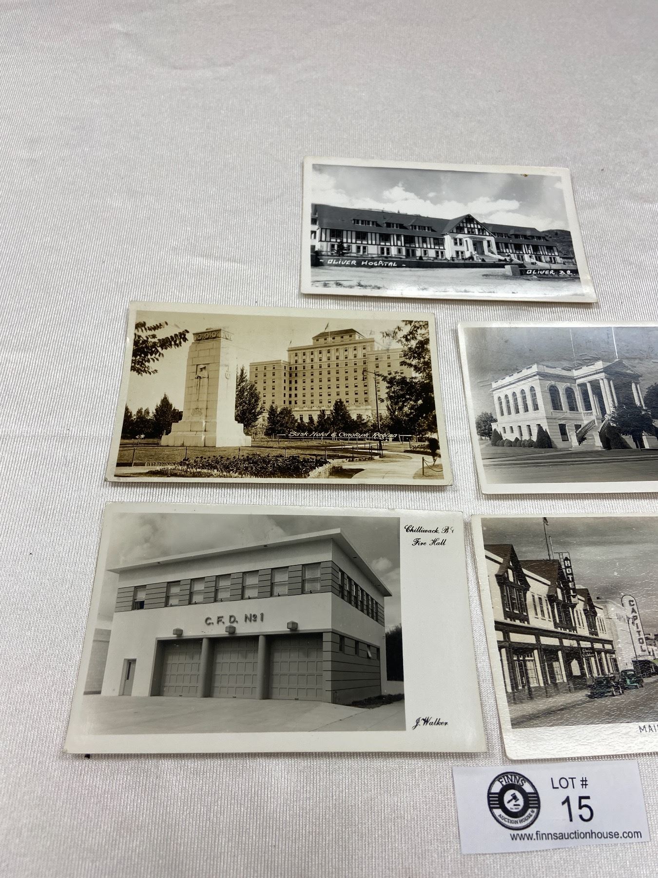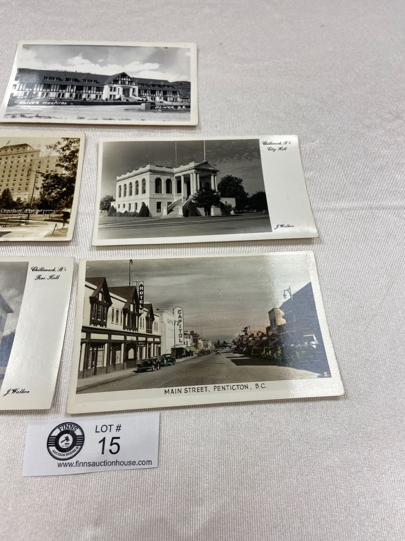 5 British Columbia B&W Postcards, Chiilwack, Vancouver Etc