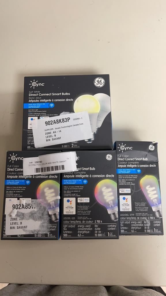 5 CYNC FULL COLOR AND WHITE SMART LIGHT BULBS - RETAIL $111