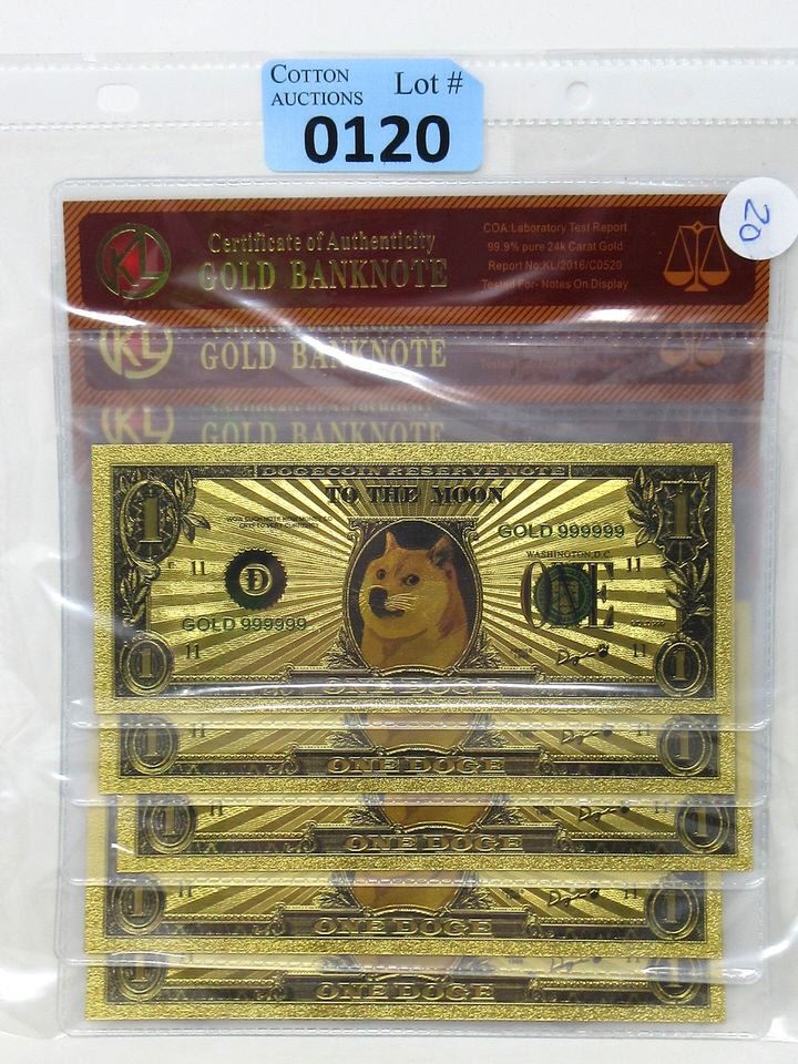 5 Certified 24 KT Gold Foil Doge Coin Novelty Notes