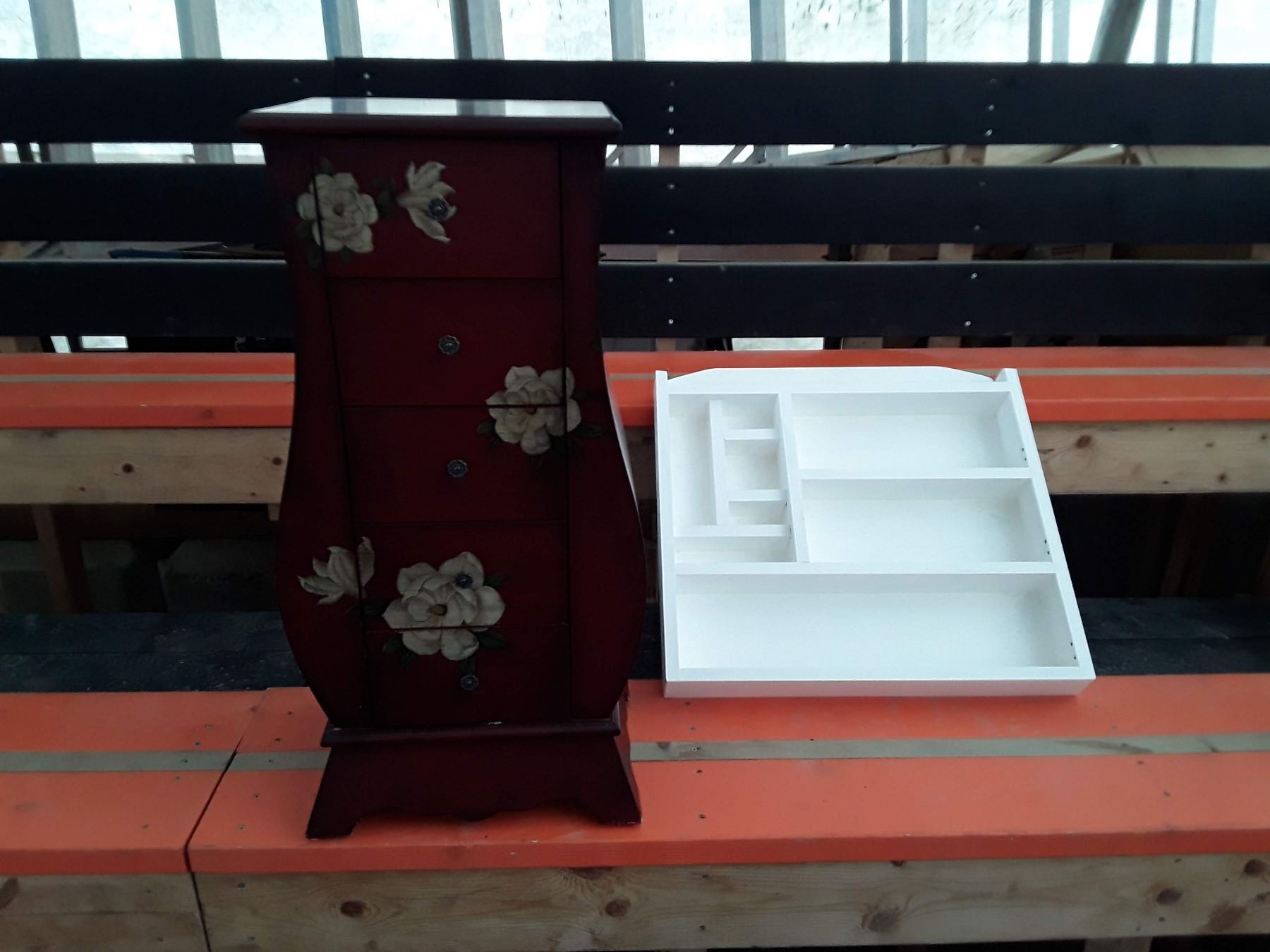 5 Drawer Small Cabinet + White Wall Shelf, - 17% Buyer Fee. Payment Processed through Live Auction World ( Visa or Master Card ) pick up Saturday, or Tuesday