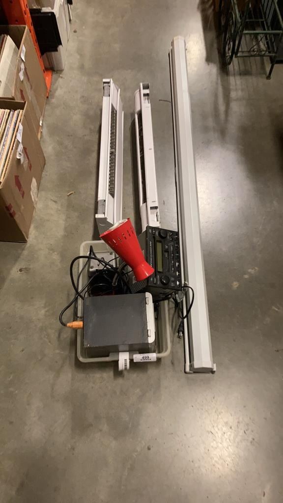 5 FOOT PROJECTOR SCREEN, 2 BASEBOARD HEATERS AND ELECTRONICS