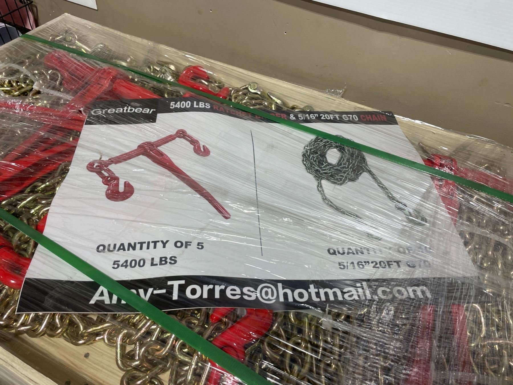 5 GREATBEAR 5400 LBS RATCHET BINDER WITH 10PCS 5/16  X 20' G70 CHAINS
