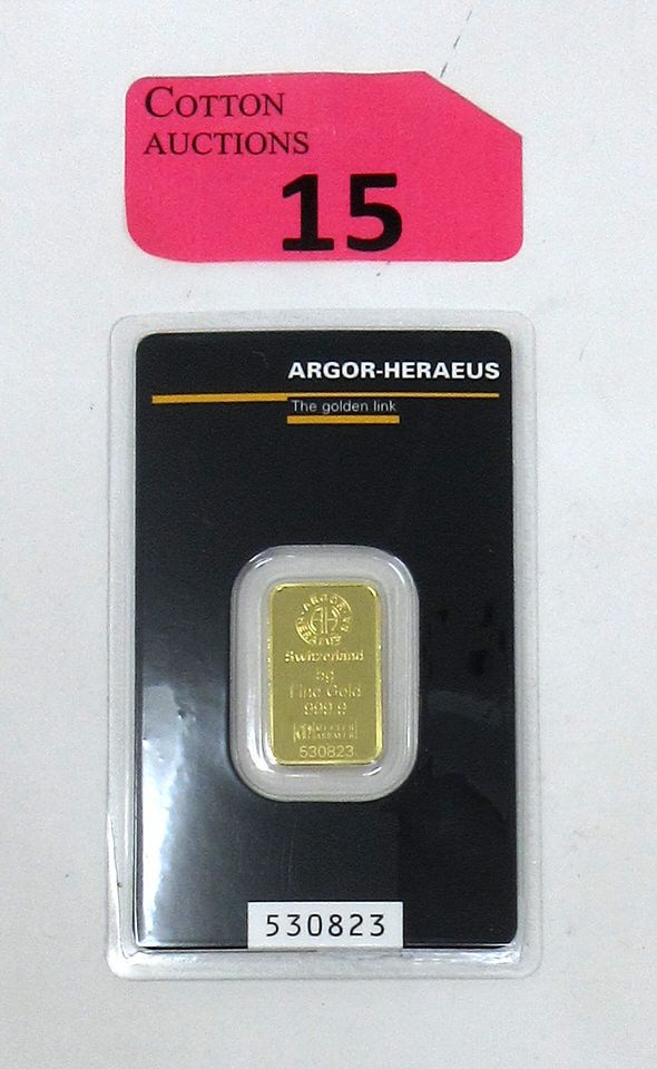 5 Gram .9999 Fine Gold Argor-Heraeus Certified Bar