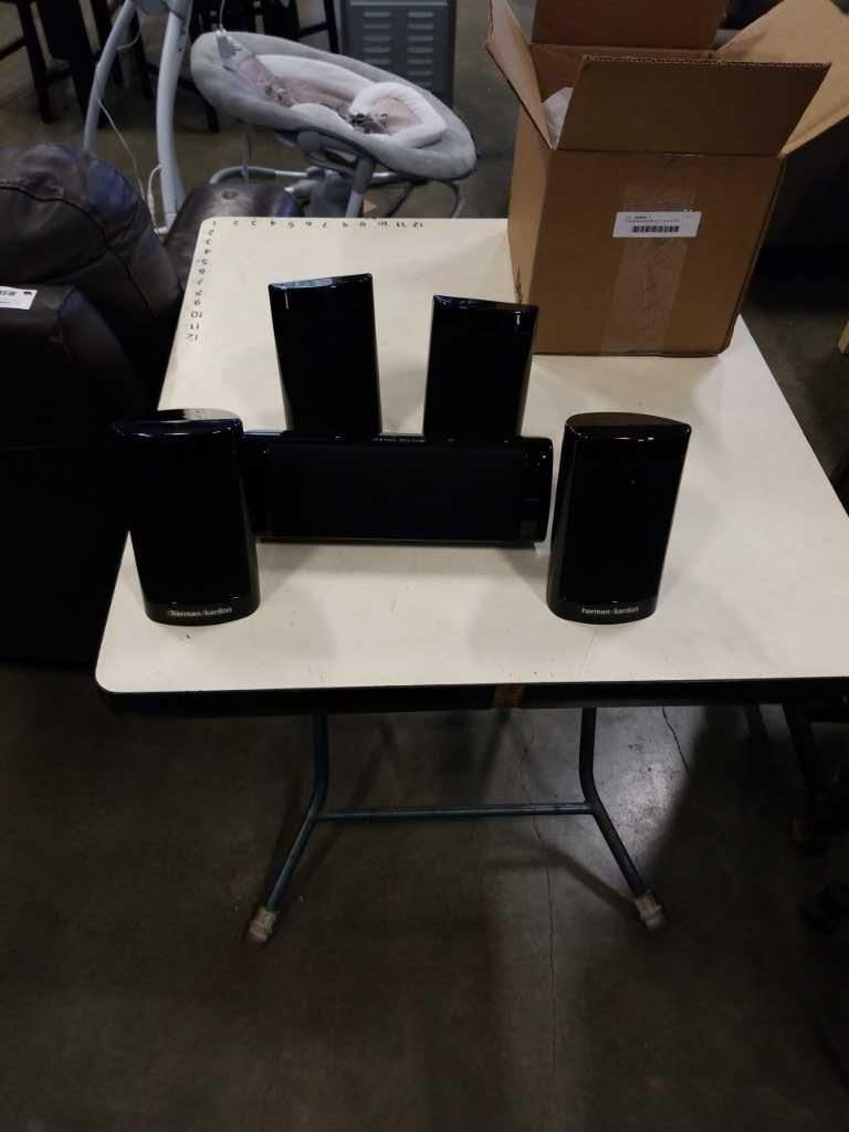 5 HARMAN KARDON HKTS SPEAKERS - 4 SAT, ONE CENTER