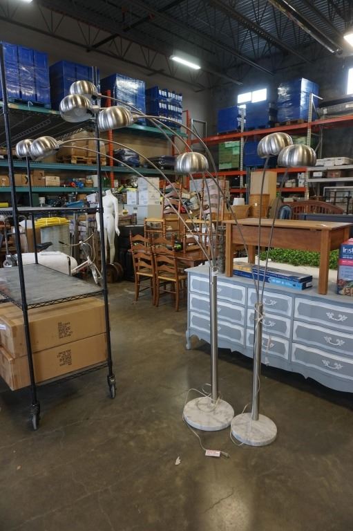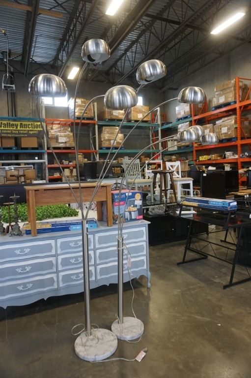 5 HEAD AND 3 HEAD STONE BASE FLOOR LAMPS