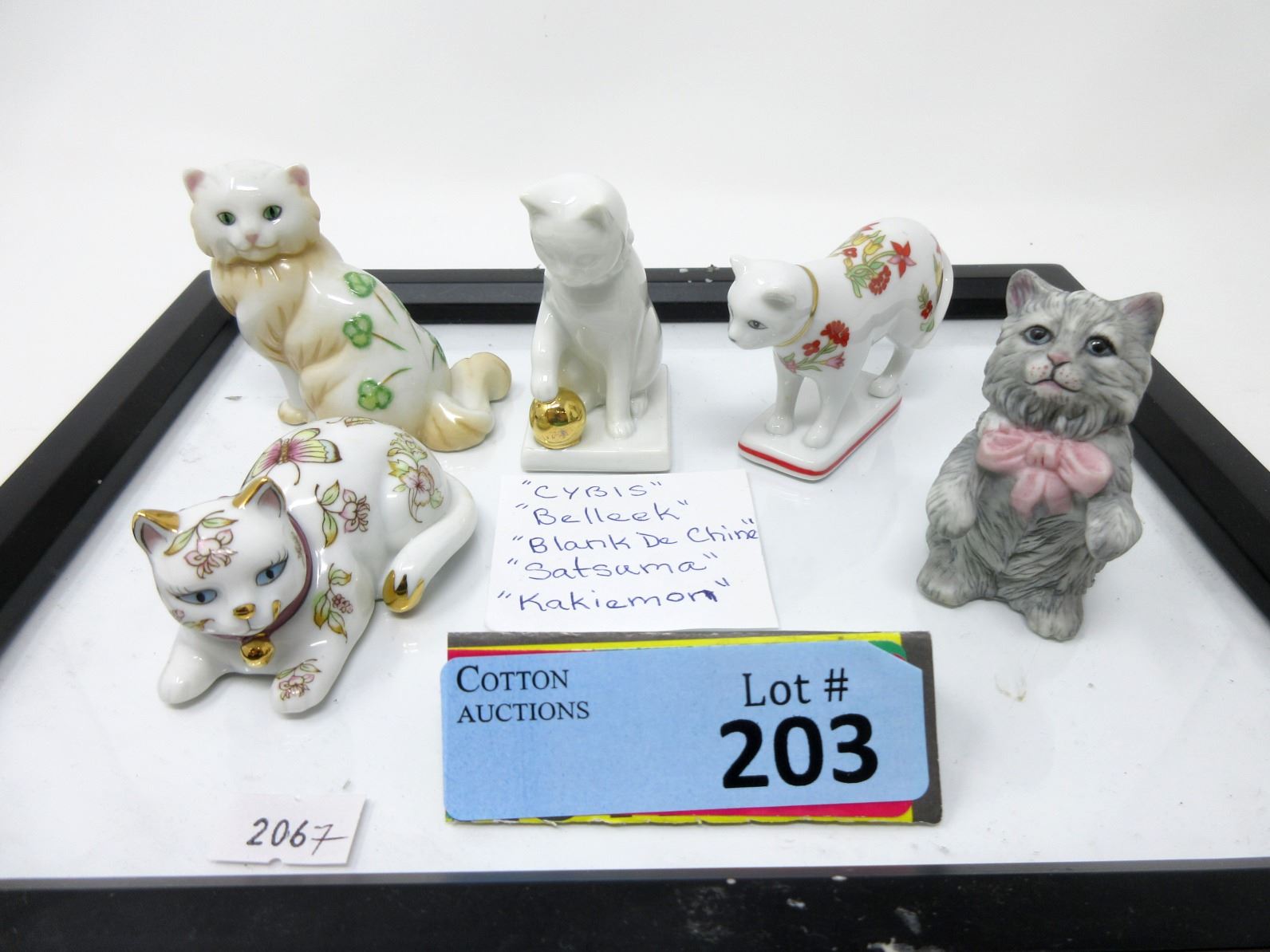"Cybis", "Belleek", "Blank De Chine","Satsuma"", and "Kakiemon".