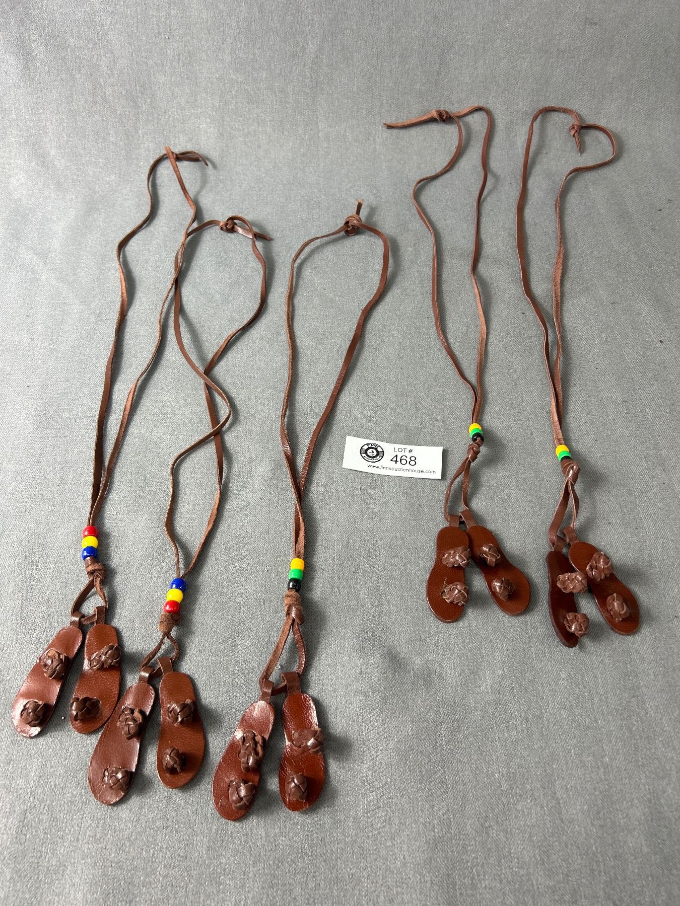 5 Hand Crafted Geanuine Leather Pairs Sandles Necklaces