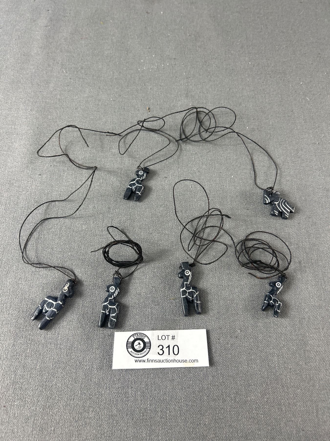 5 Hand Crafted Stone Giraffe & 1 Rhino Pendants w/ String Necklaces