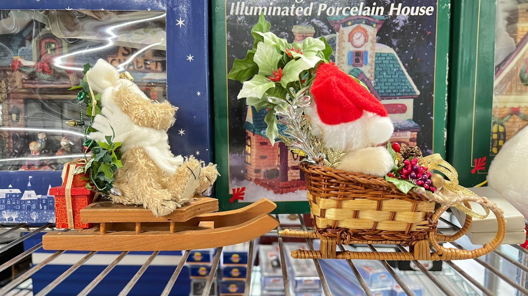 5 ILLUMINATED CHRISTMAS STRUCTURES & ASSORTED CHRISTMAS DECOR ITEMS