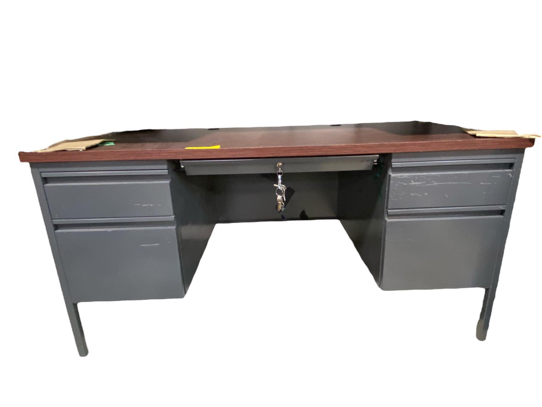 5' Long Metal Desk with 5 Drawers & Wood Look Top