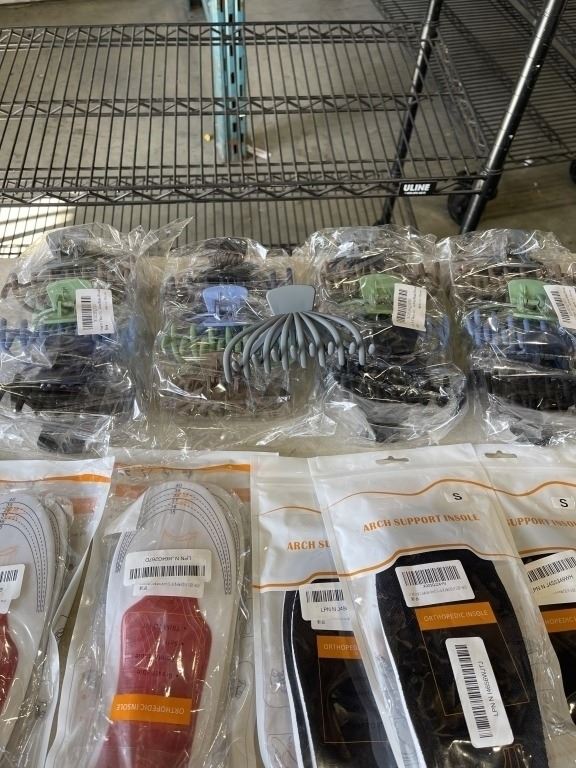 5 NEW ARCH SUPPORT INSOLES, SIZE SMALL, AND 4 NEW 6 PACKS OF OF 4.3 INCH HAIR CLIPS, ASSORTED COLOR