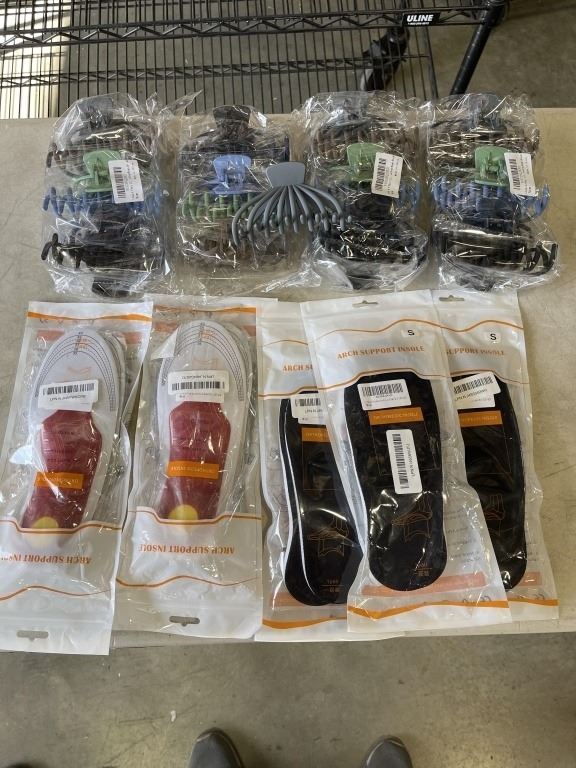 5 NEW ARCH SUPPORT INSOLES, SIZE SMALL, AND 4 NEW 6 PACKS OF OF 4.3 INCH HAIR CLIPS, ASSORTED COLOR