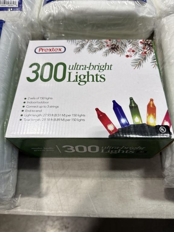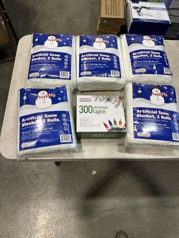 5 NEW ARTIFICIAL SNOW BLANKET, 3 ROLLS 2.6FTX 7.8FT EACH EXPANDS TO 1.78 THICK, AND NEW SET OF PREXTEX 300 ULTRA BRIGHT LIGHT, INDOOR OUTDOOR, CONNECTABLE, MULTI BULB GREEN WIRE
