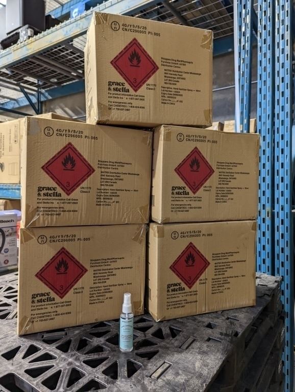 5 NEW CASES OF GRACE AND STELLA HAND SANTIZER TRAVEL SIZE (60ML) BOTTLES 120 PER CASE, EXPIRES 06/23