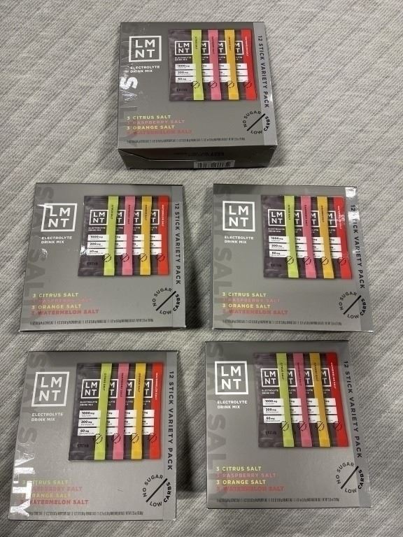 5 NEW LMNT RECHARGE VARIETY 12 PACK ELECTROLYTE DRINK MIX - RETAIL $130, BB 05/2025
