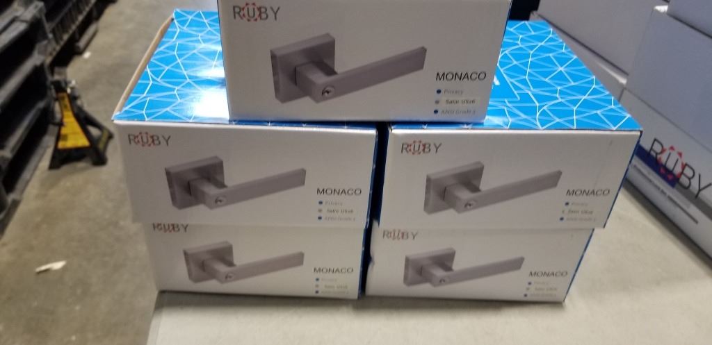 5 NEW MONACO PRIVACY DOOR LOCKS, US26 SATIN FINISH, ANSI GRADE 3