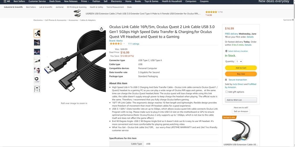 5 NEW OCULUS QUEST/QUEST 2 USB 3 LINK CABLES RETAIL $150