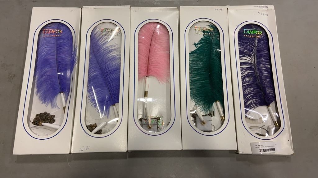 5 NEW TAMFOR TREASURES GENUINE OSTRICH PLUME PEN WITH BASE