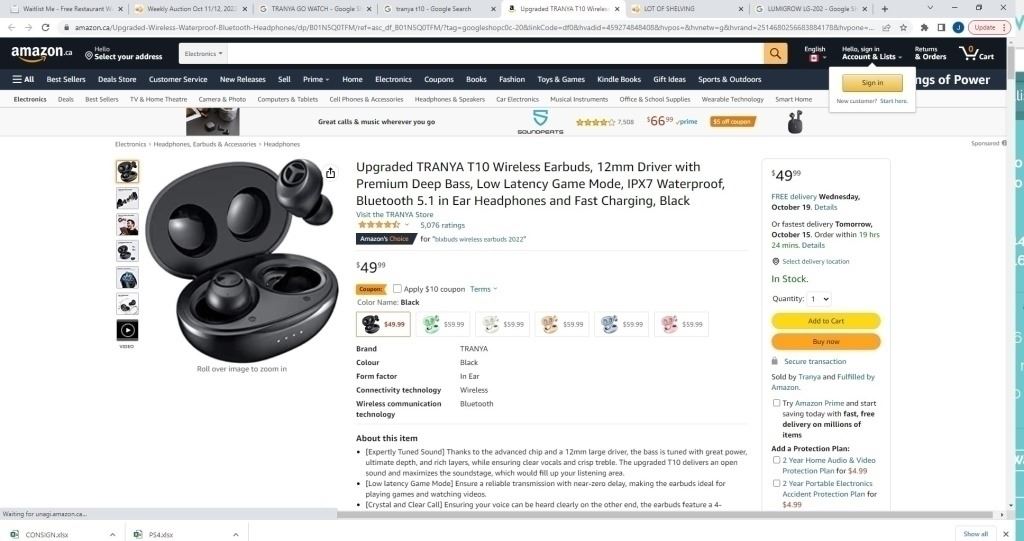5 NEW TRANYA T10B TRULY WIRELESS EARBUDS RETAIL $250