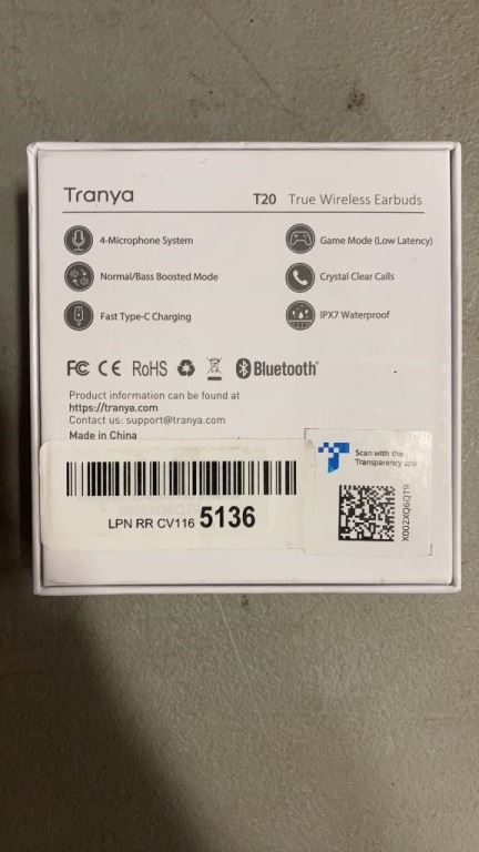 5 NEW TRANYA T20 TRULY WIRELESS EARBUDS RETAIL $250