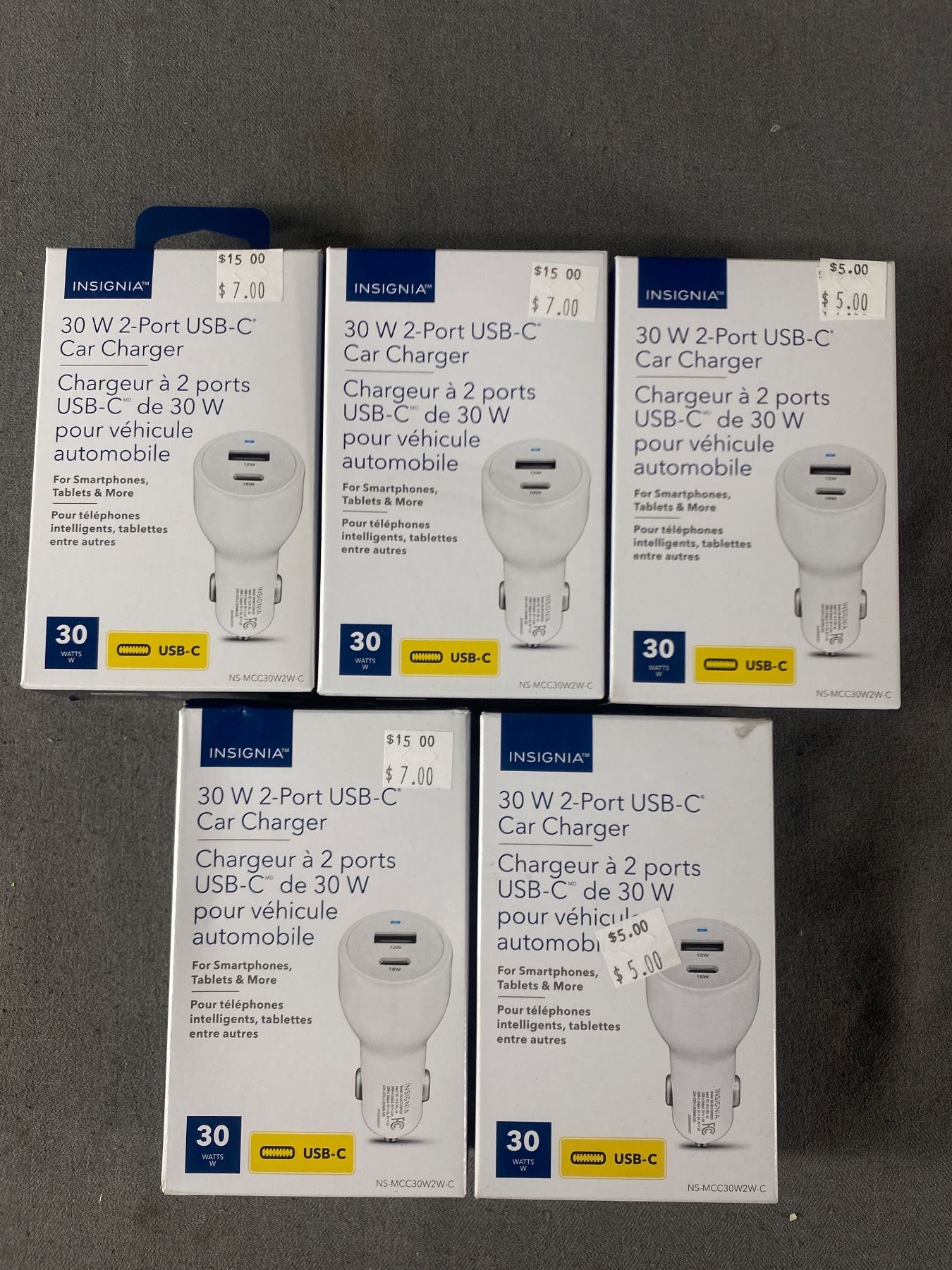 5 - NIB Insignia 30w 2-Port USB-C Car Chargers For Smartphones, Tablets & More