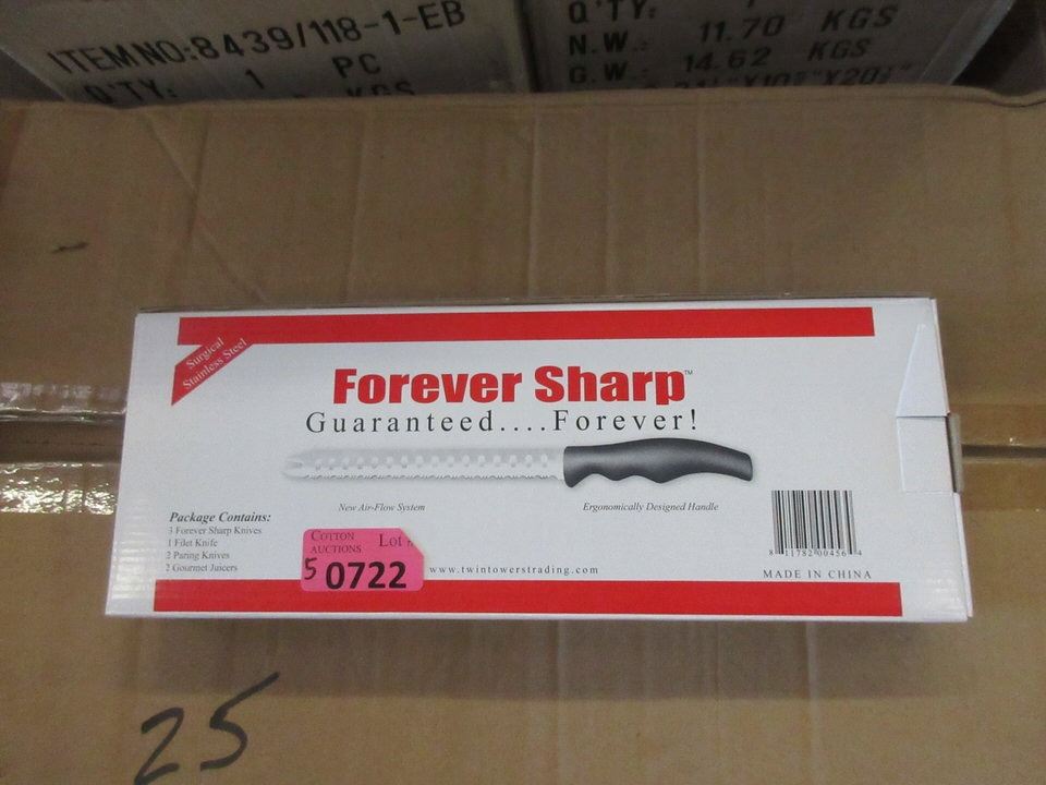 Each set has three 8" knives, 2 paring knives, 1 filet knife and 2 juicers.