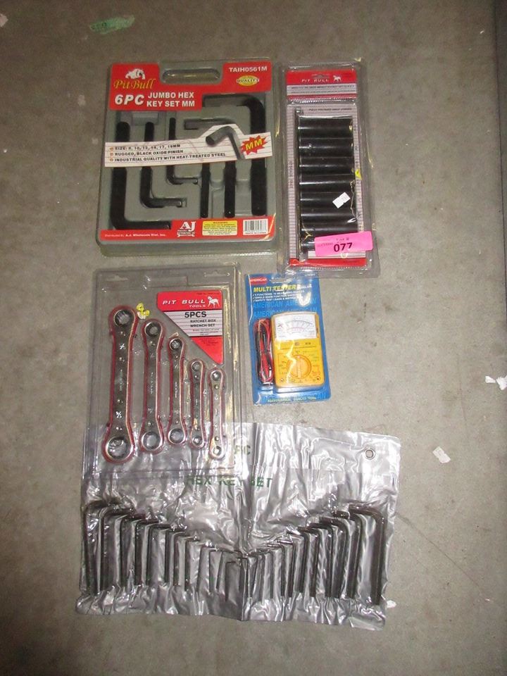 Jumbo hex key set, 24 piece hex key set, socket set & multi tester.