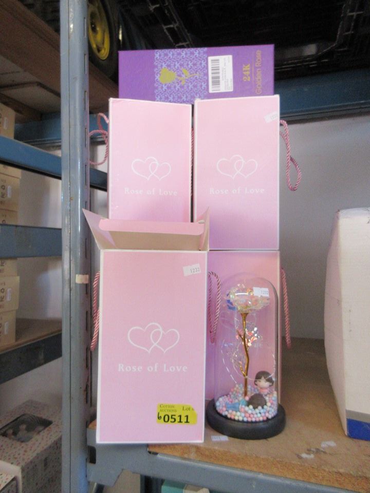 5 New LED Flower in 8  Domes & 1 Gilded Rose