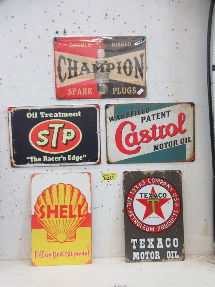 5 New Metal Auto & Gas Theme Wall Signs - 8" x 12"