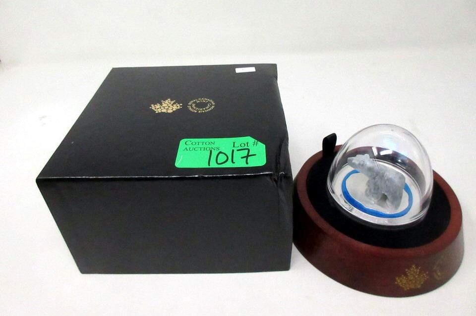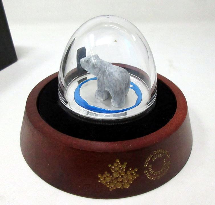 157.6 Gram .9999 Fine Silver $50 coin, with carved Soapstone Polar Bear. Mintage:1,300. Original mint box and certificate.