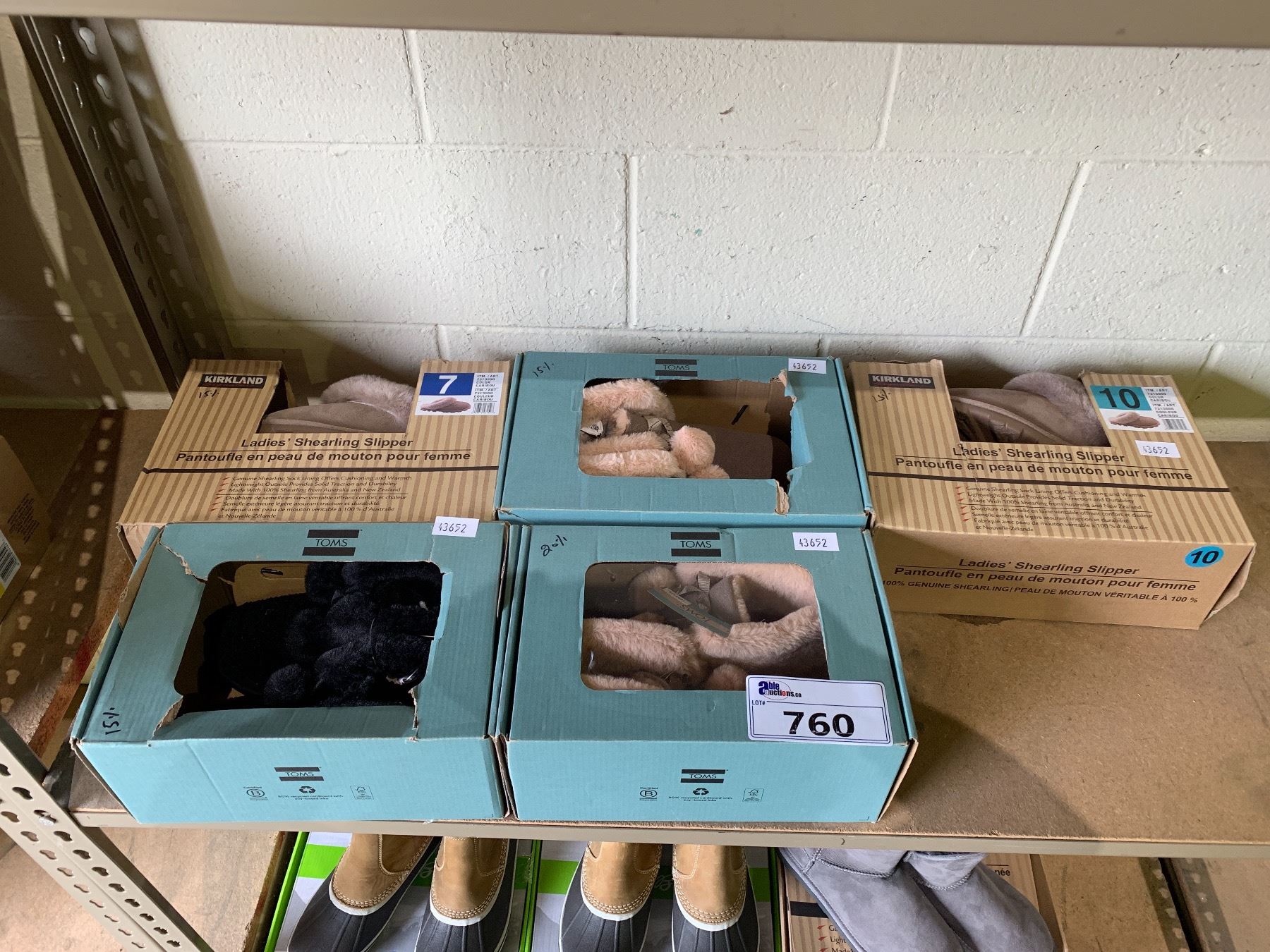 5 PAIRS OF ASSORTED KIRKLAND & TOMS SLIPPERS (VARIOUS SIZES)