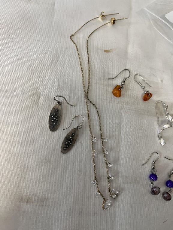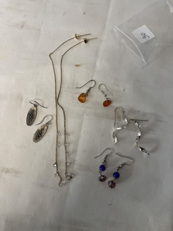 5 PAIRS OF SILVER W/ SOME GEM STONES DANGLE EARRINGS