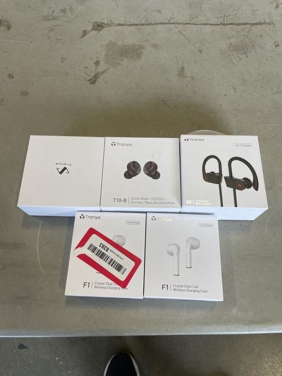 5 PAIRS OF TRANYA WIRELESS HEADPHONES, 2 T10B, 2 F1, AND X2