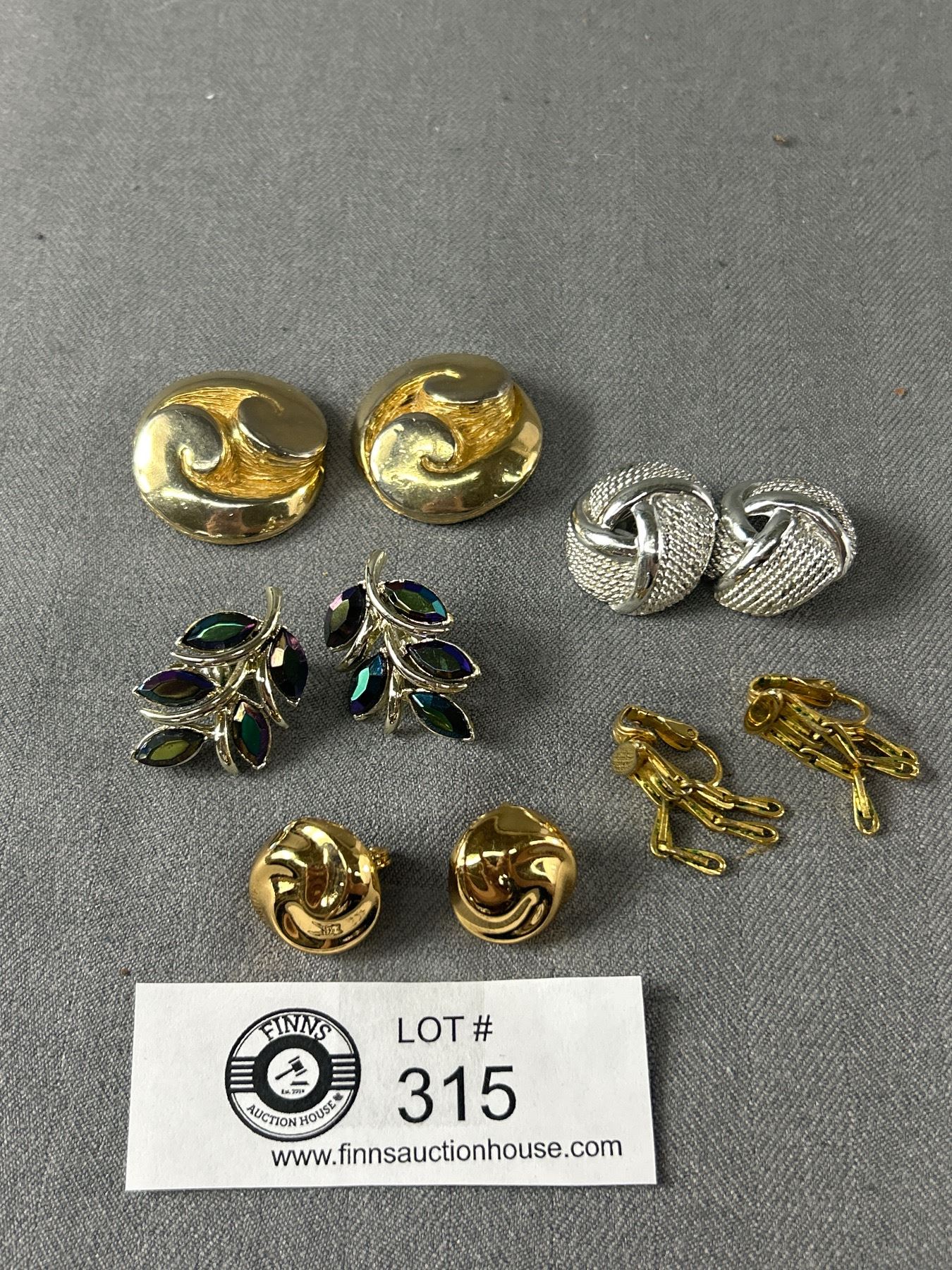 5 Pairs Of Vintage Clip-On Earrings, One Marked Coro