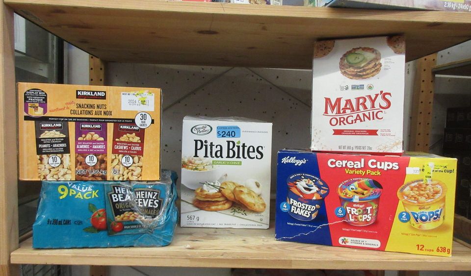 Pack of 9 Heinz Beans, Kirkland pack of 30 assorted nuts, Kellogg's cereal cup variety pack and 2 boxes of crackers. Earliest BB: Oct 2024.