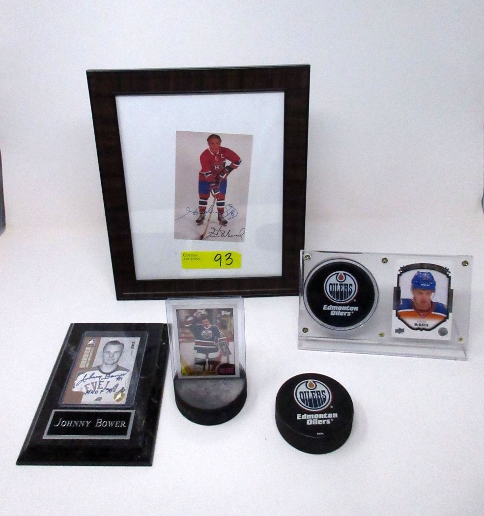 3 Framed cards, puck and 12" x 10" Henry Richard photo.