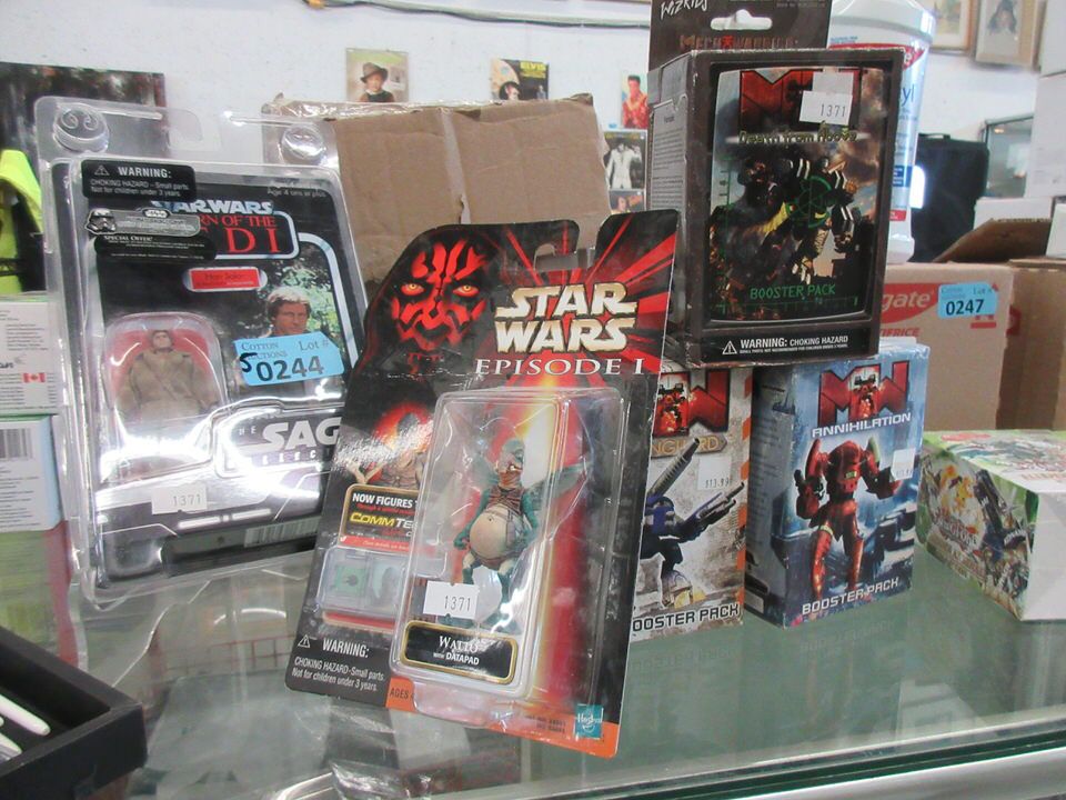 Mech Warrior Booster Packs for Vanguard, Death from Above & Annihilation. Hasbro Star Wars Hans Solo in Trench Coat and Watto with Data Pad & Com Tech Chip. Original packages.