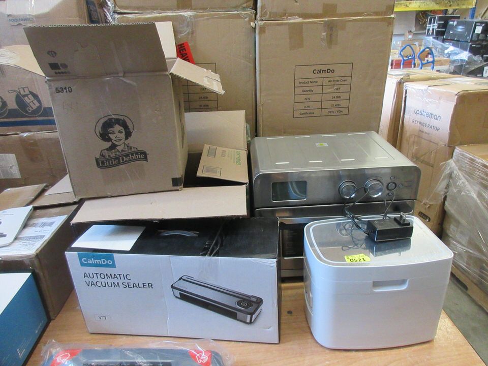 2 Sets of SX1 Mini 3D Printer parts, V77 vacuum sealer, cosmetics cooler and air fryer oven. Open box. Store return.