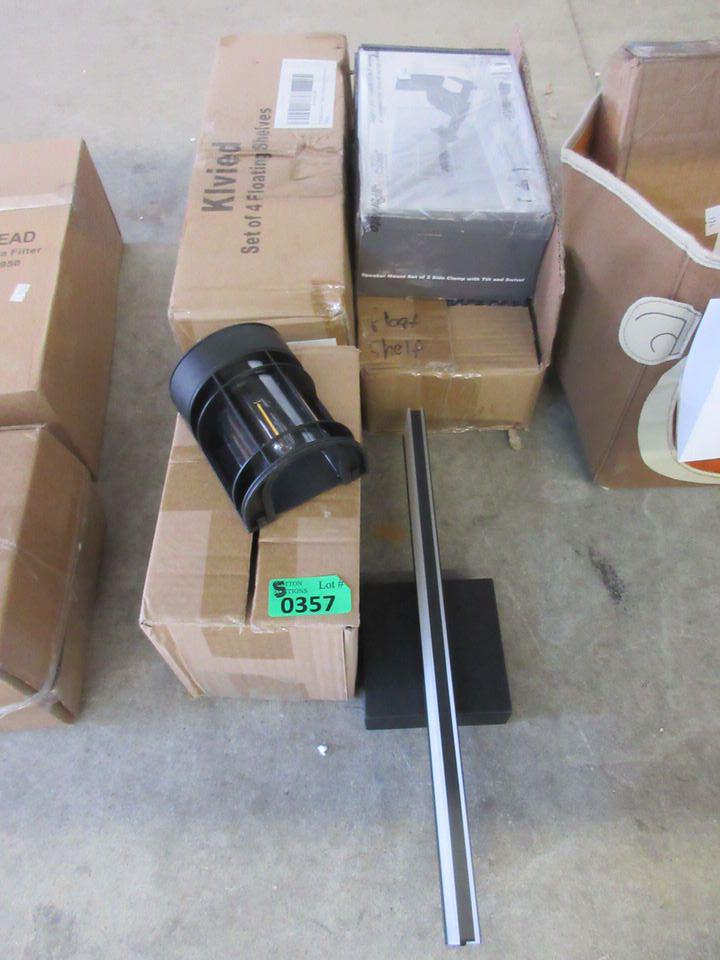 Floating shelf, box of 4 floating shelves, speaker mount, wall sconce & lamp.