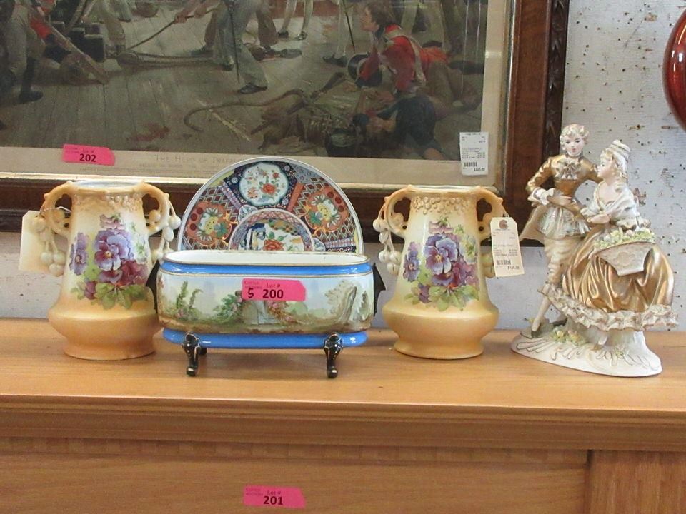 Pair of hand painted 9" x 7" vases, 6" x 12" x 6" jardinière and more.