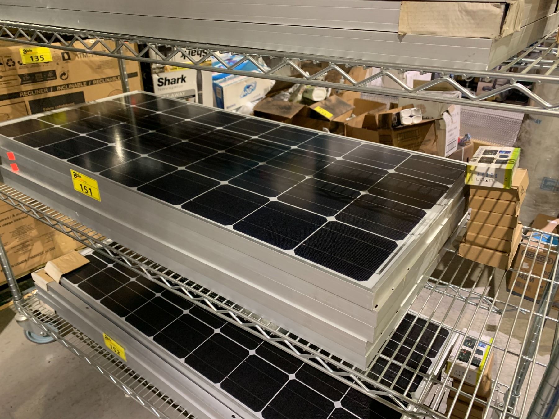 5 SOLAR PANELS BSM100M 1000W WITH SOLAR CHARGE CONTROLLER, 5 10A SOLAR CHARGE CONTROLLERS & 1 20A PWM SOLAR CHARGE CONTROLLER