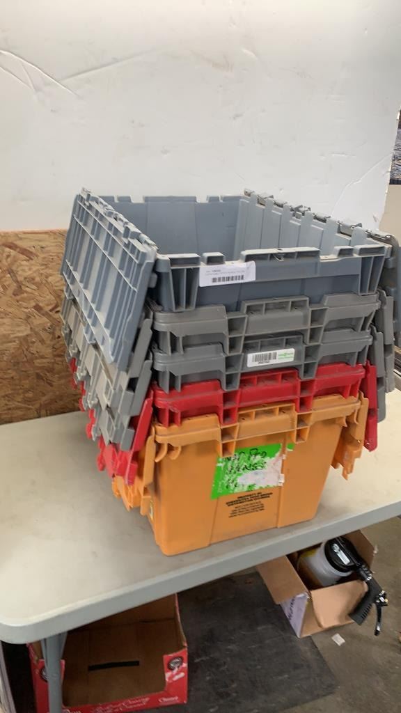 5 STACKABLE TOTES W/ BUILT IN LIDS